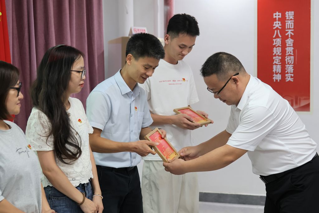 党支部书记王亲敏同志为党员们送上定制的“政治生日”贺卡,卡片印着入党誓词与专属入党日期,字里行间传递着组织的关怀与期许。