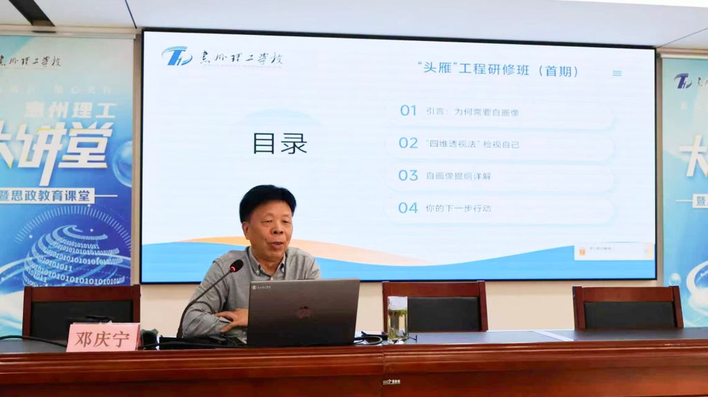 10月29日下午,惠州理工学校2025年“头雁工程”研修班首期课程正式启动,特邀邓庆宁教授作“如何给自己画一张像”的专题培训,系统讲述了自画像对中层干部自我认识与价值的重要性。学校理事长、校长刘鸿君,行政领导班子及业务骨干共同参与本次培训。