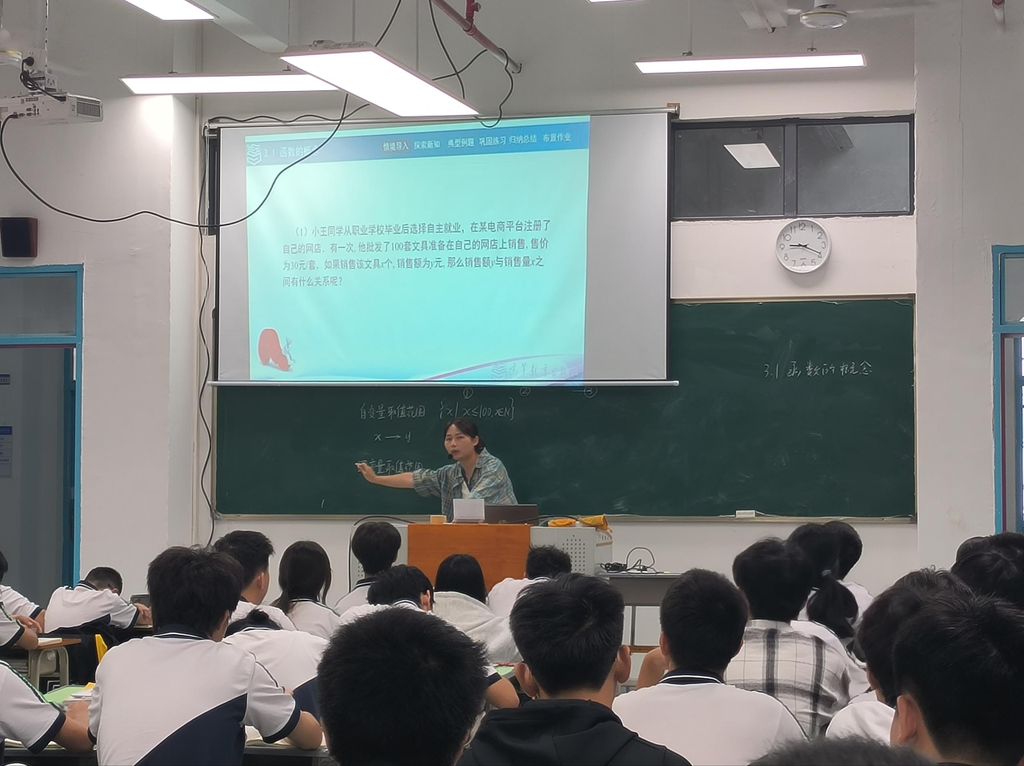 吴春凤老师聚焦《函数的概念》教学,以电商销量统计、恩格尔系数分析、气温变化曲线等生活场景为导入案例,通过图表对比、例题演练,直观解析“定义域、对应法则、值域”三大核心要素。学生在自主归纳函数定义、辨析同一函数判定标准的过程中,将抽象知识转化为解决实际问题的能力,有效培养数学建模与逻辑推理素养。