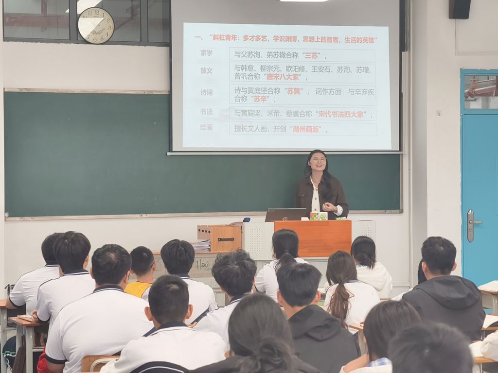 高晓敏老师在高考班2505班讲授《念奴娇·赤壁怀古》,以“知人论世——文本赏析——文化延伸”为主线,在解析苏轼豪放词风的同时,特别关联“惠州东坡文化IP”,布置“探寻苏轼在惠足迹”的实践作业,让学生在诗词学习中衔接本土文化,实现“古典文学+地域传承”的双向赋能。
