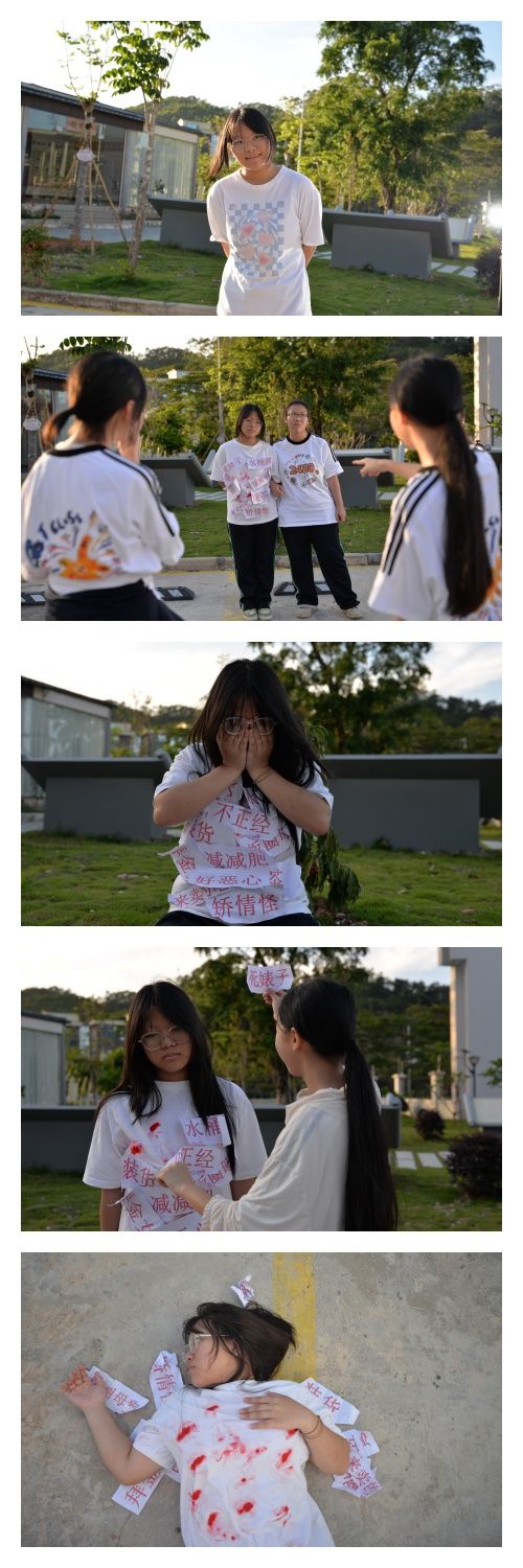 本组作品通过五张照片讲述了一个关于校园言语欺凌与隐性伤害的视觉故事。它记录了一个开朗学生如何在外界偏见中逐渐崩溃,又在同伴关怀下获得救赎的过程——但撕掉的标签下,伤痕依然存在。