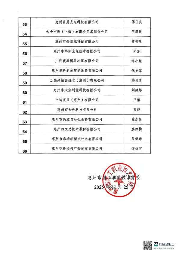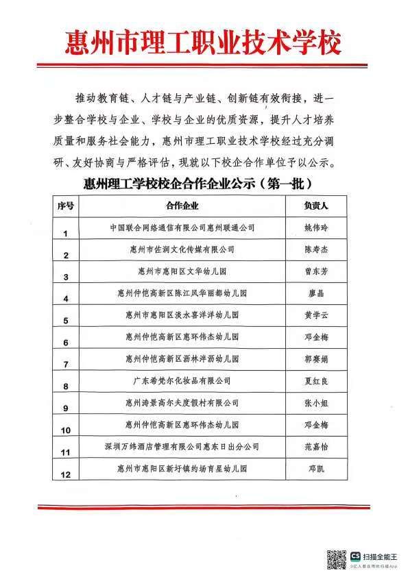 惠州理工学校校企合作企业公示(第一批)