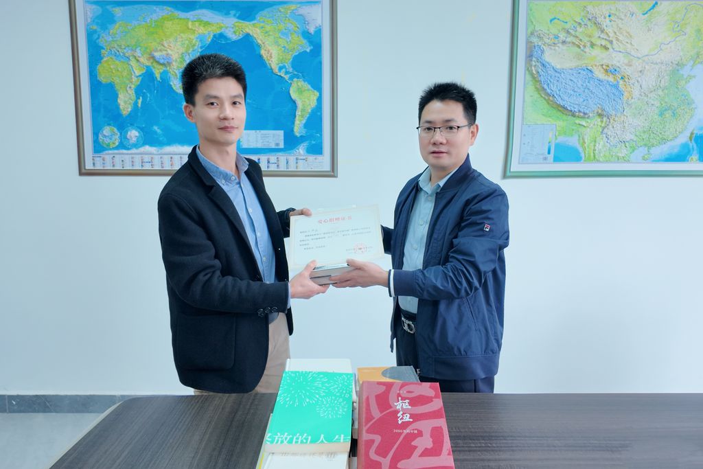 在校领导的引领下,教职员工纷纷踊跃捐赠,涵盖文学经典、心理成长、职业技能等多个类别;同学们也积极献出各类健康向上的读物,传递爱心与知识。捐赠点负责人何晓东、原云霞认真接收图书,细致登记信息,并为每位捐赠者现场颁发《爱心捐赠证书》。这份薄薄的证书,承载着学校对师生爱心奉献的深深敬意与感谢。